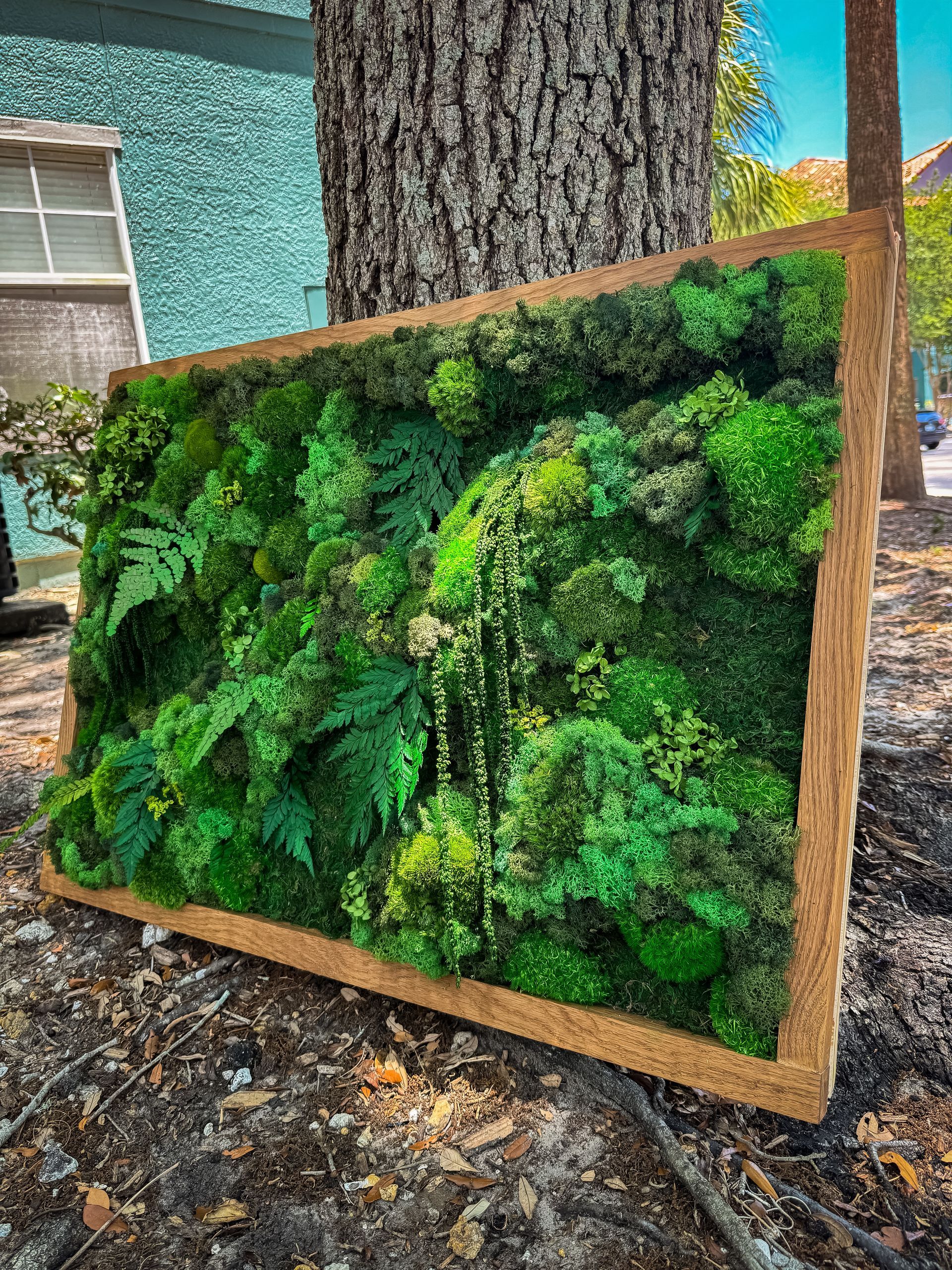 I believe that art should be both stunning and sustainable, which is why I focus on preserved moss. These pieces require no watering or sunlight, making them perfect for those who want to enjoy the tranquility of nature without the upkeep.